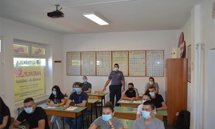 Uz pridržavanje svih mjera izdanih od Stožera civilne zaštite, policijski službenik Policijske postaje Pleternica Siniša Ćelić je održao predavanje na temu podizanja razine sigurnosti u cestovnom prometu